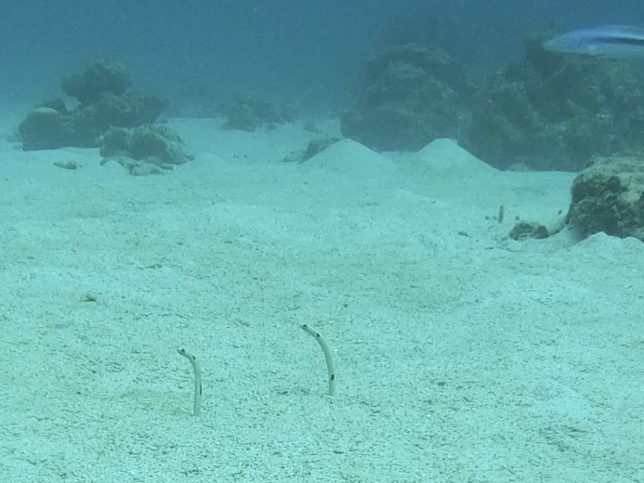 唐馬では少し深場に行くと 可愛いチンアナゴに出会えることもありますよ。