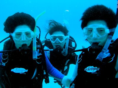 最後は小杉さんグルーと一緒に来て体験ダイビングに挑戦した谷口さん&宇田川さんも一緒に記念撮影♪谷口さん達も『とっても楽しかった!!』と、笑顔でのコメントでした。今度はCカードを取得して一緒にFUNダイビングに行きましょう!