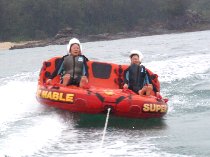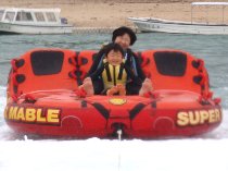 まずは一足お先に、こちら・・・比較的爽やかな乗り物(?)バナナボート!