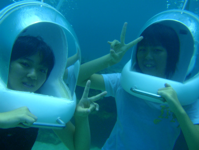 マリンウォークは水深が浅い所で行うので、空も透けて見えます。