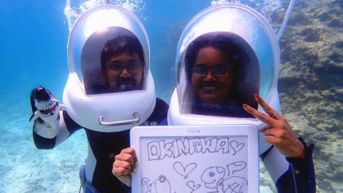 不會游泳也沒關係,只需使用專用頭盔,在海底也能像在陸地上一樣呼吸。