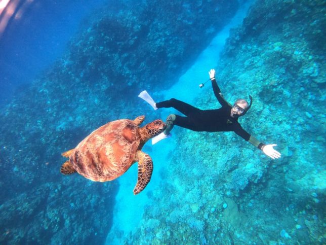 スノーケル In 慶良間1日便TwitterFacebookLINE2024.08.07はいさい🌺スノーケルガイドのあおいです😊毎日海の透明度が良くて最高ですっ⭐️珊瑚との距離が近いですね☺️プールみたいに澄んでて綺麗🥰とっても甲羅が綺麗な亀さん上から見てもこの透明度今日も楽しいスノーケルでしたっありがとうございました!あおい