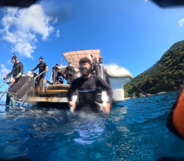 まず一本目は野崎へ。カラフルな珊瑚の上を、スズメダイたちが群れになって悠々と泳いでいて、とても癒されました。
