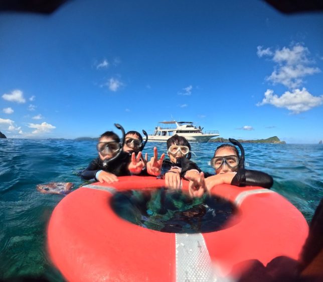 今日は浮潛の一日で、船の上は全部スノーケラーのお客さん。中囯語を担当しました。中でも特に印象的だったのは、仲良しでちょっと拌嘴しながらもお互いを気にかけていた可愛い兄妹。二人で一緒に泳ぐ姿がすごく可愛いです。