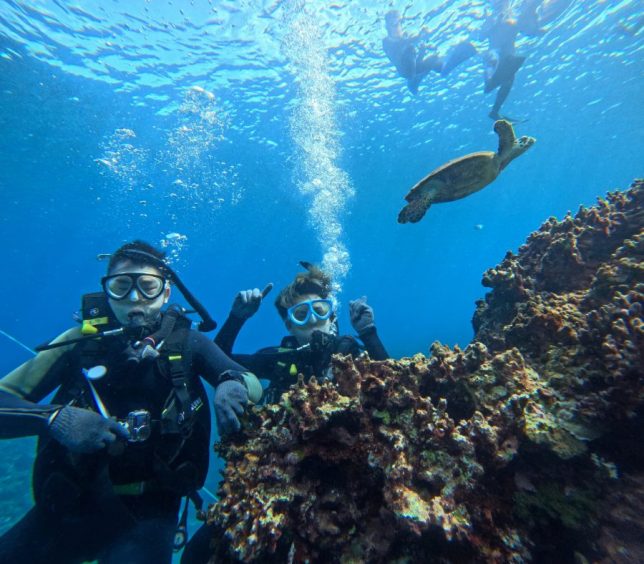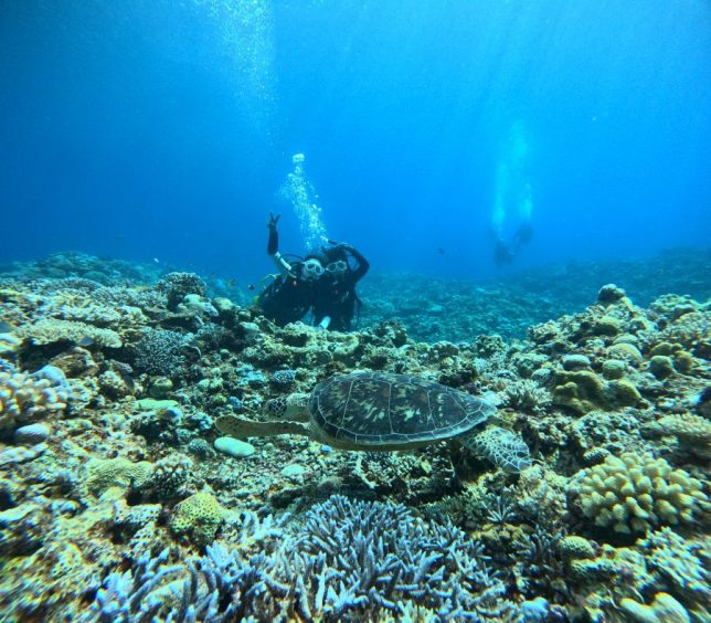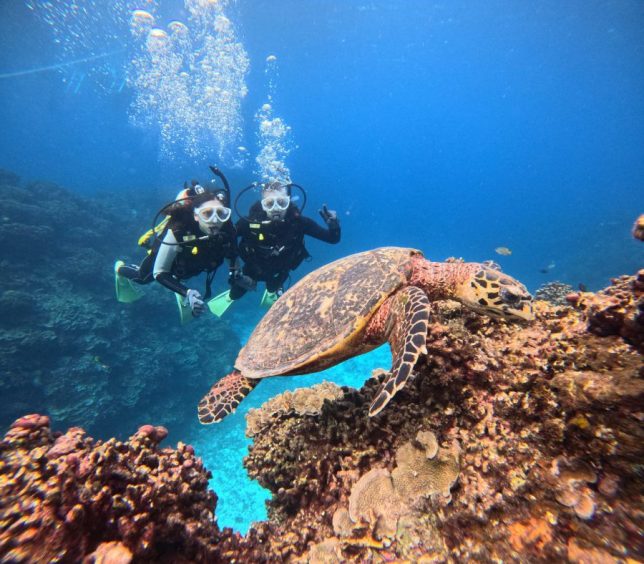 サンドラーでは、最初のダイブから海亀に出会いました。