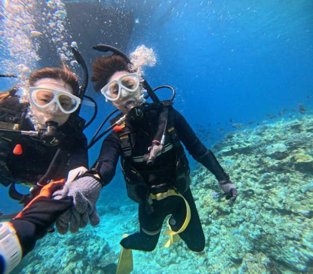 今日は中文とEnglishチーム、どちらも楽しい雰囲気で、水中も船上も笑顔。