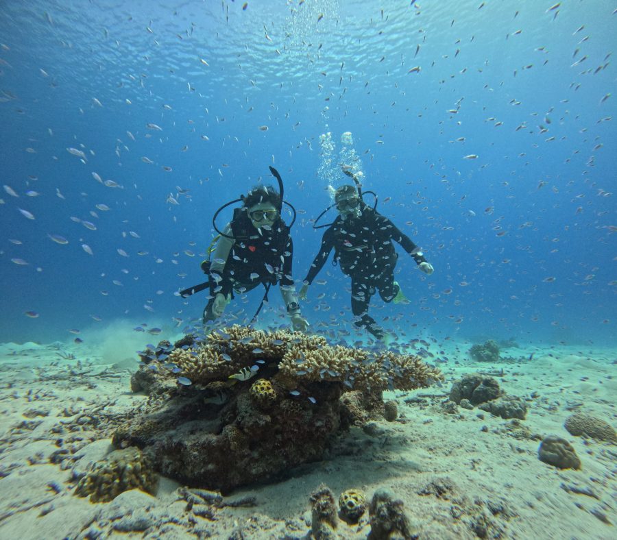 近づくと一斉にサンゴの中へ隠れていく姿がまるで波のようで、水中の静けさに動きを添えてくれました。