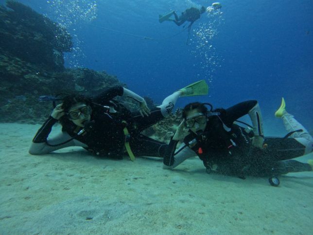 There was a surprise waiting for us: 3 turtles in just 15 minutes! That’s a rare treat at this particular dive site. All three were on the move, so no pictures—no proof 😄 But trust us, the happy faces say it all!