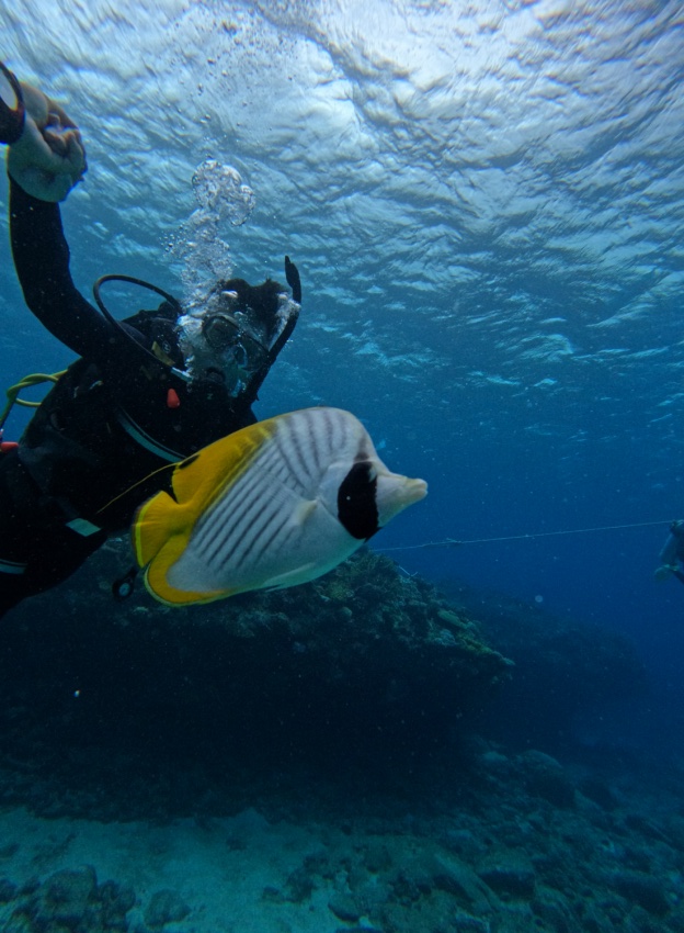 1️⃣ Threadfin Butterflyfish (Chaetodon auriga) – The ultimate scene-stealer! These two kept following the camera — you’ll spot them photobombing nearly every shot.