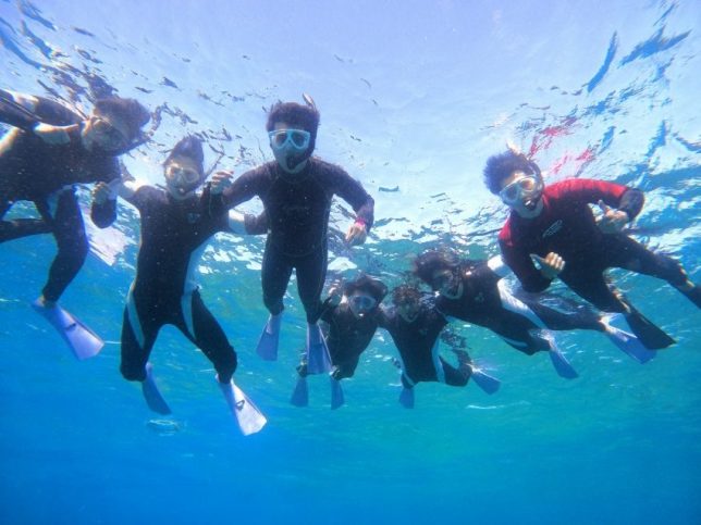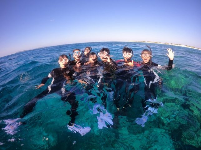 修学旅行ぶりの沖縄で、その時は海に入れなかったとのことでスノーケリング参加しに来てくれました!(^^)!