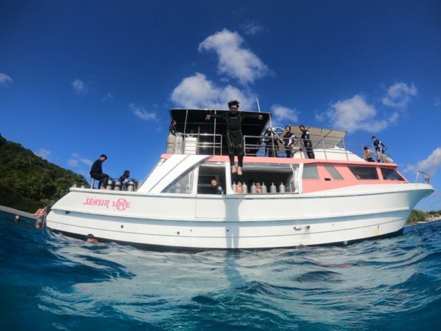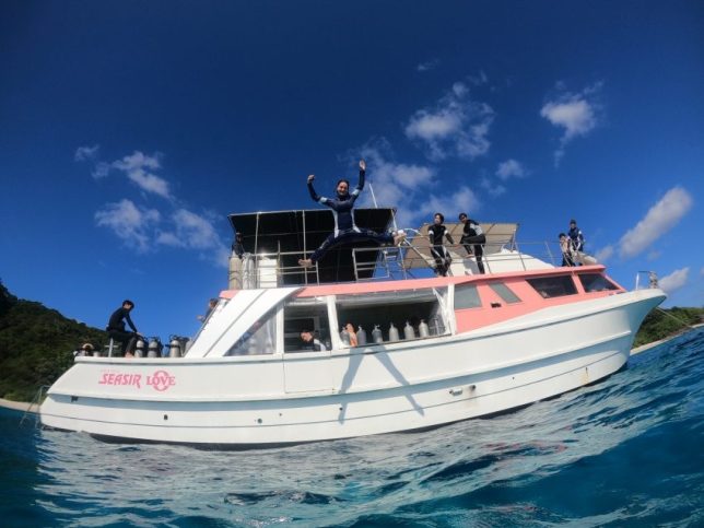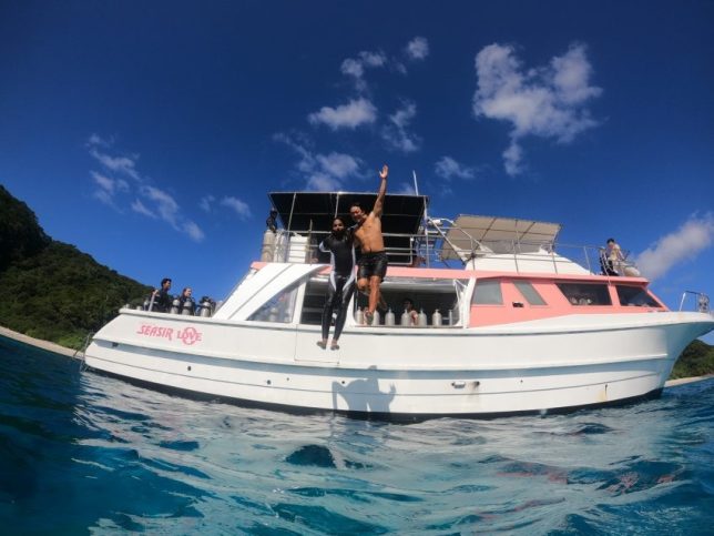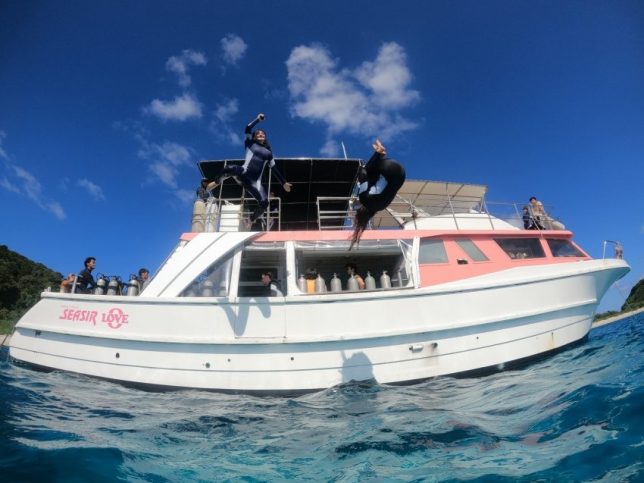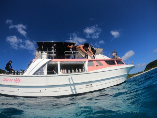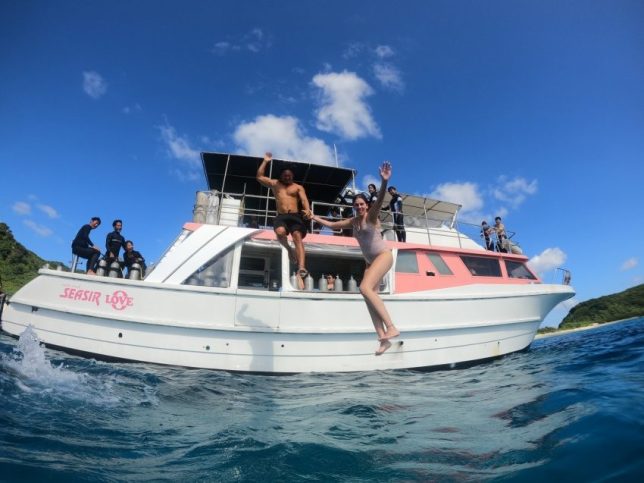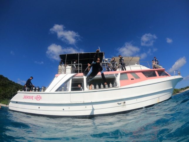 スノーケリングも終わり休憩中みんなで飛び込み大会!!