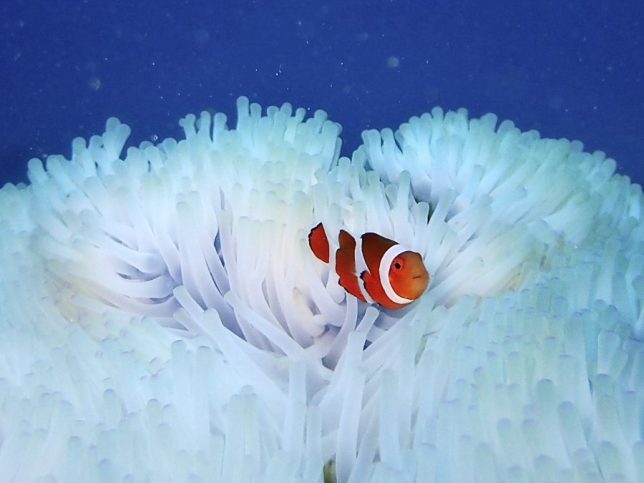 しかし水温が29度以上になるとイソギンチャクが体内にいる褐虫藻を追い出してしまいます。そうすると鮮やかな色から真っ白な色へと変わってしまいます。温暖化でイソギンチャクも白化している地域もあるので、皆さんも環境への向き合い方を一度振り返ってみましょう!一人ひとりの意識で変わります!