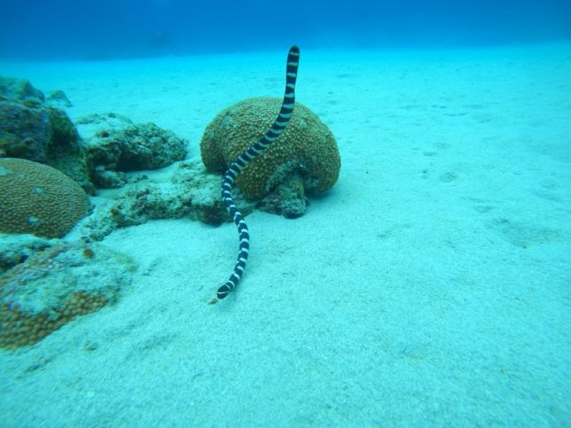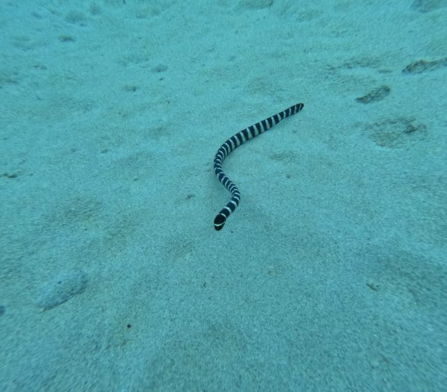 We started the day surrounded by Banded sea snakes (Laticauda colubrina) 🐍— at least six different young individuals weaving gracefully through the water. Spotting that many in the first 10 minutes felt like a rare treat and set the tone for an exciting adventure.