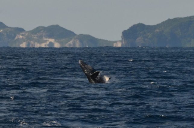 お母さんクジラは仔クジラが遊んでいるのを水中からほほえましく眺めていたのでしょうか?
