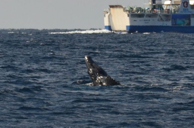 午前中は仔クジラが序盤ずっとジャンプしていて、皆で大興奮!