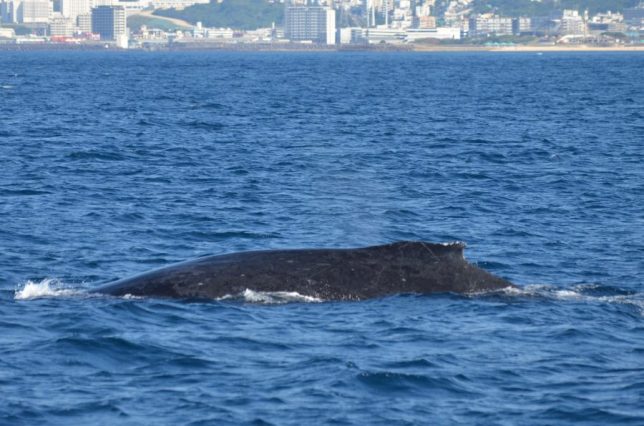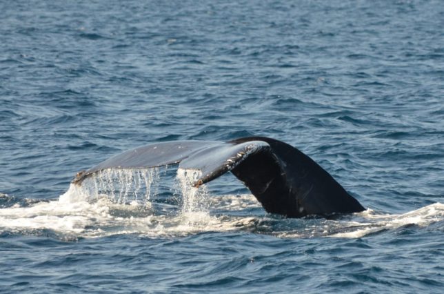 クジラの仲間は尾びれを上下に振って泳ぎます。