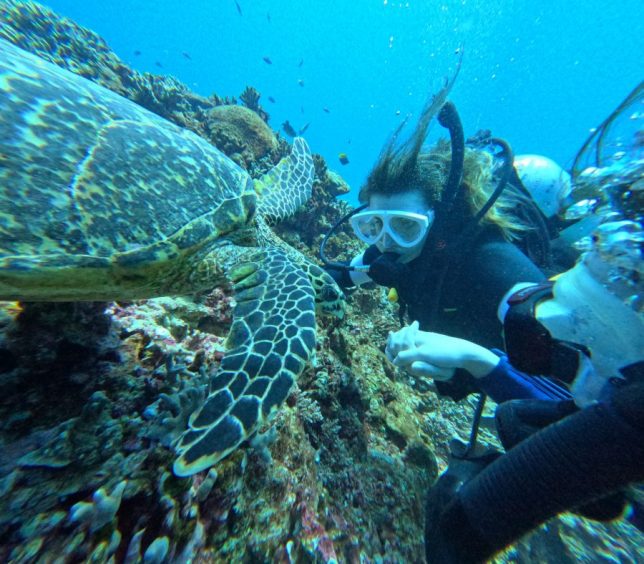 今天的潛水日誌:與海龜的「超近距離」接觸!1日便TwitterFacebookLINE2026.03.11今天體驗潛水發生了超級驚喜的一幕!正當我們在欣賞珊瑚礁時,一隻超大、超可愛的海龜竟然主動游了過來,還一度跟我們近到「觸手可及」。雖然當下真的很興奮,好想伸手摸摸牠那美麗的背甲,但我還是要大聲提醒大家:千萬不要摸海龜! 🚫🐢即便牠「主動投懷送抱」游向你,潛水員也要立刻縮手、倒退或閃避。為什麼不能摸?保護生態:人類手上的細菌可能會讓海龜生病,且驚嚇到牠們會破壞其自然習性。愛牠,就請跟牠保持完美的「社交距離」。讓我們用眼睛捕捉美好,把尊重的空間留給大海的主人!📸✨
