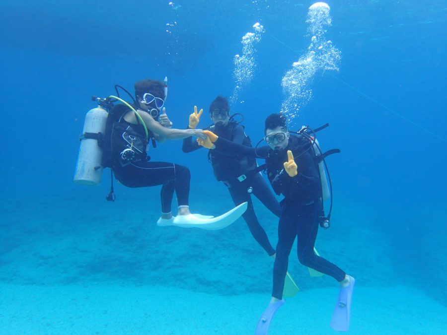 3名でスノーケリング